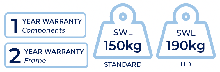 Full clearance under the bed minimises the risk of cord impingement and protects flooring from damage.